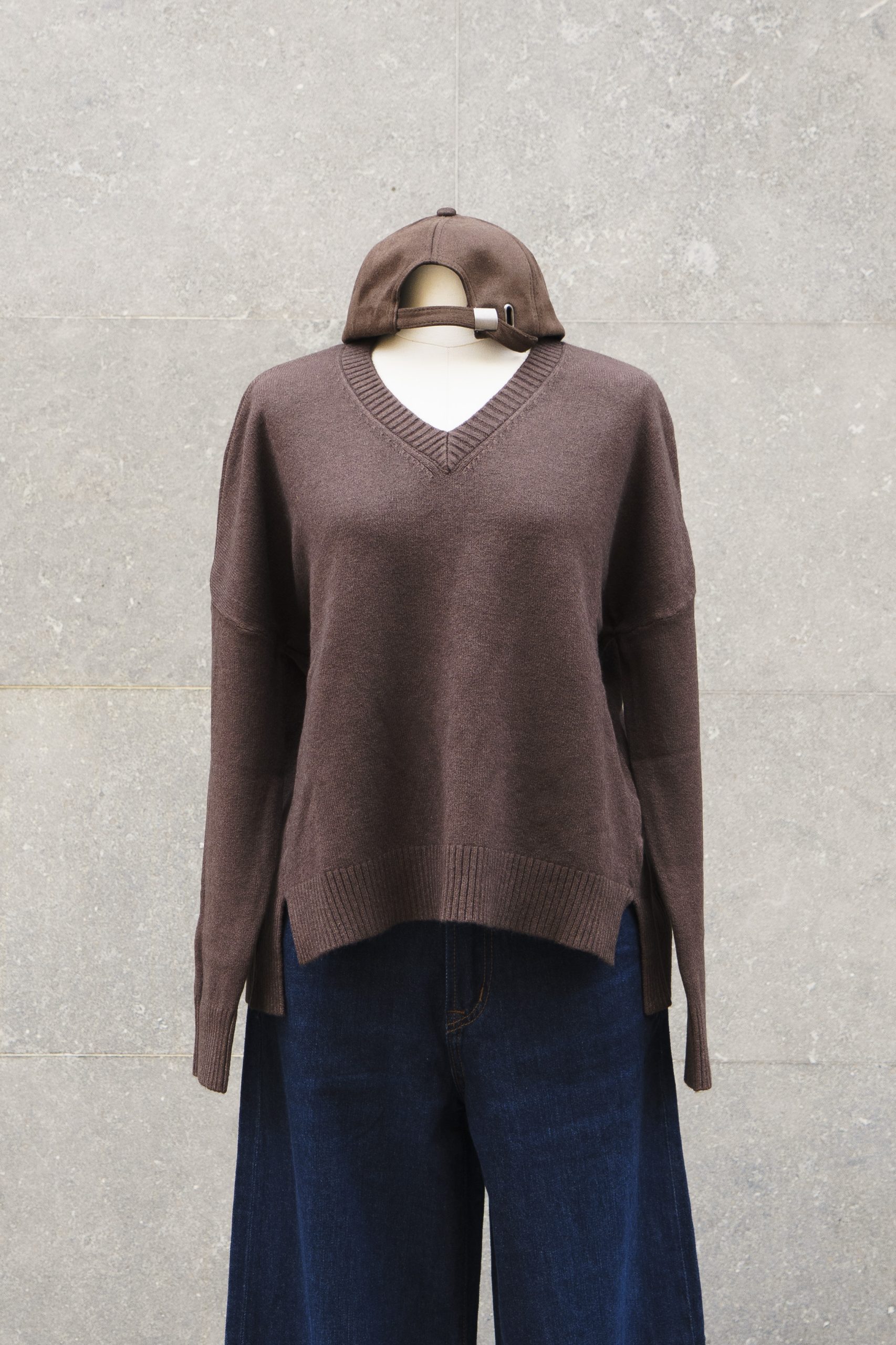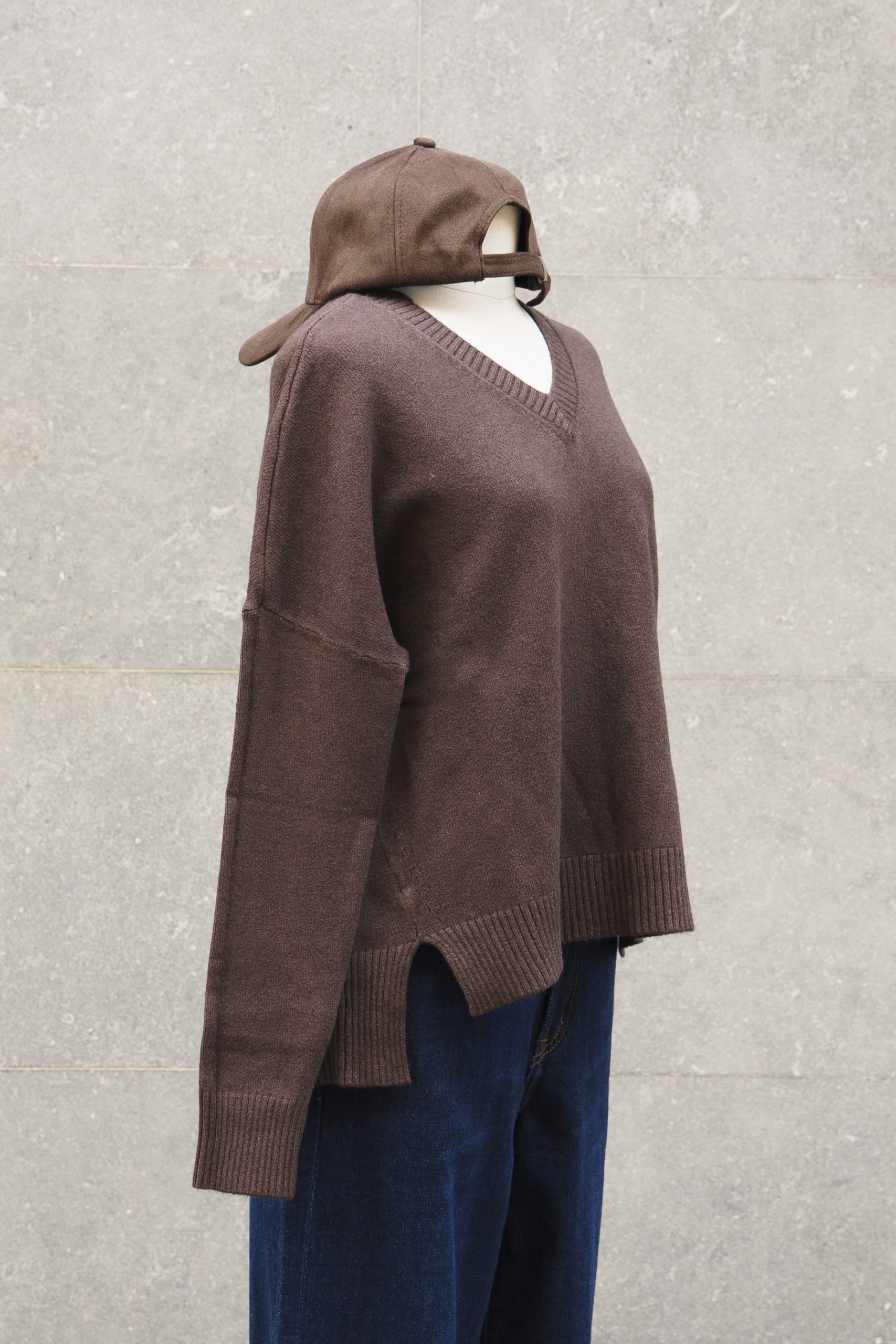 Jersey de punto ligero con escote en V y aberturas laterales. Su corte ligeramente oversize aporta un aire moderno.